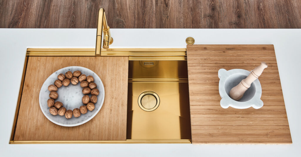 The For the Chef Collection includes premium sinks, faucets, accessories, workstation systems, and thoughtful storage designed for everyday and professional-level cooking.
